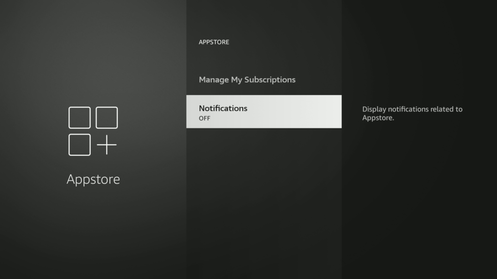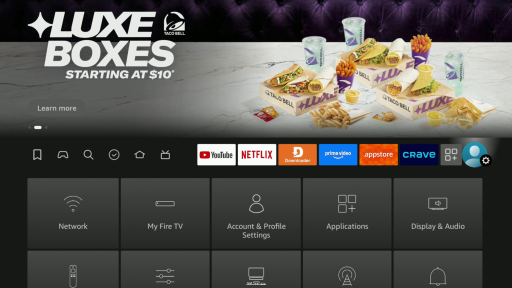 On the Fire TV home screen, scroll over to the gear icon in the top-right corner.