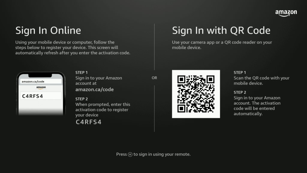 When you plug in your Fire TV Stick for the first time, you’ll see the Amazon boot logo.