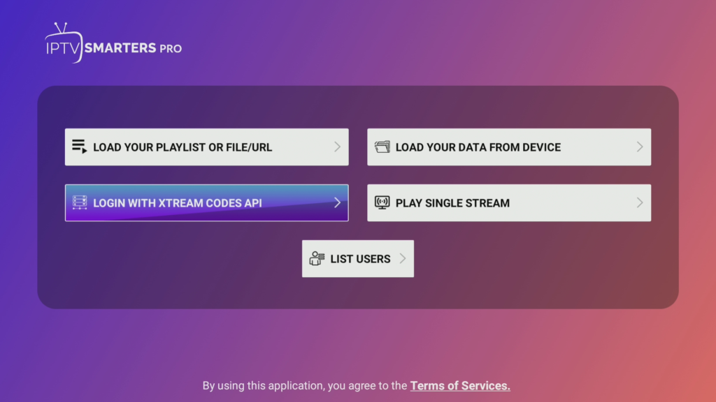 - Choose Login with Xtream Codes API